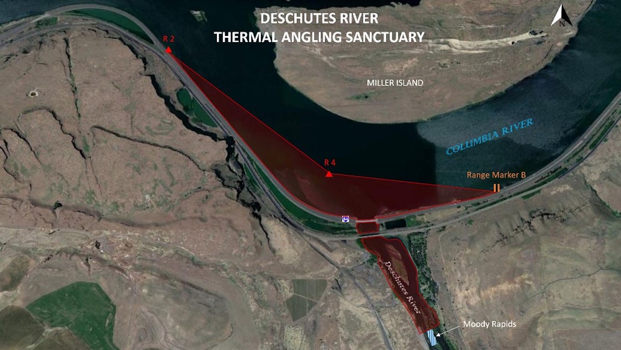- Through July 14: Lower Deschutes River from the markers at the lower end of Moody Rapids downstream to the mouth at the I-84 Bridge