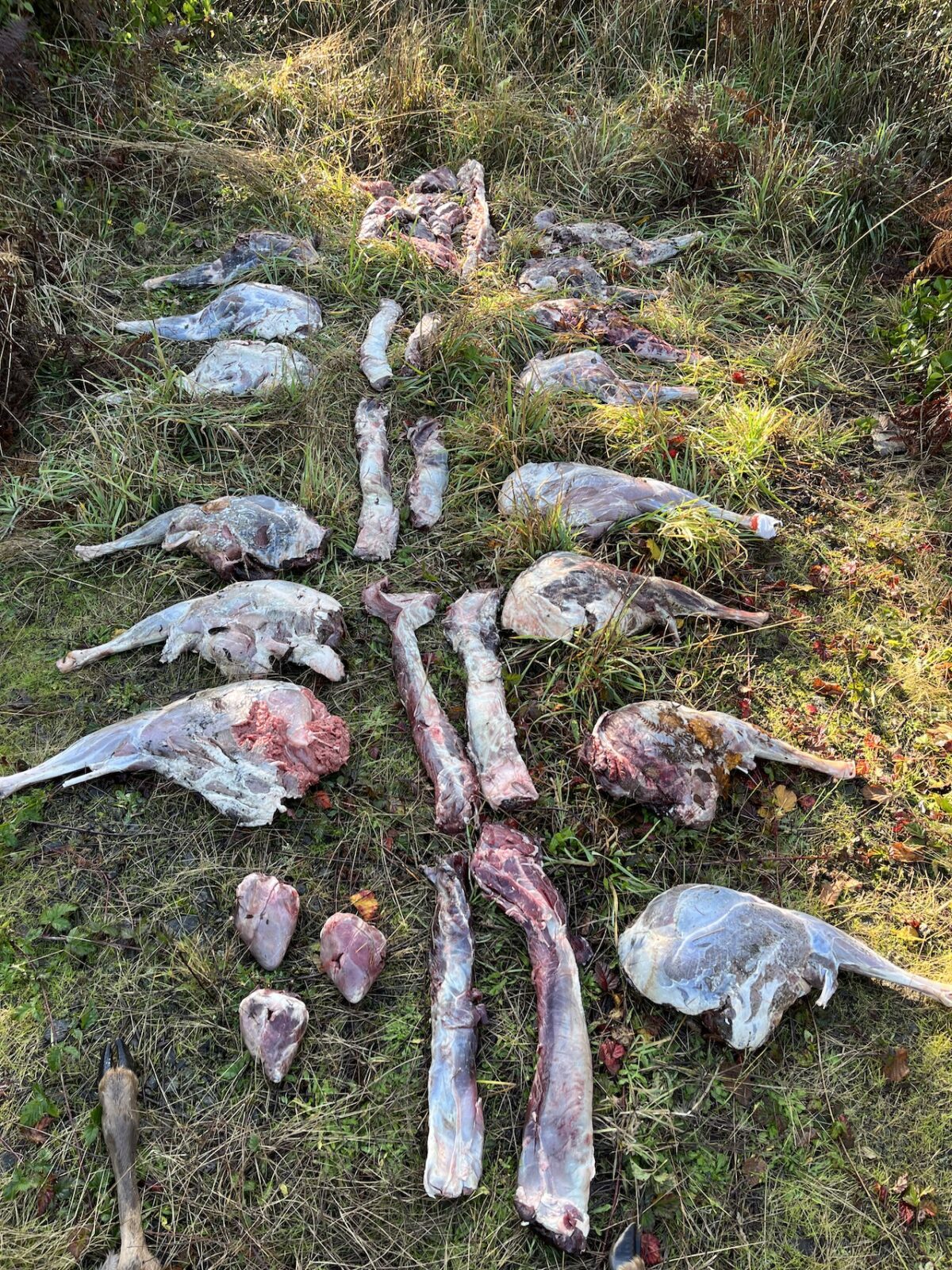 A trooper responding to the scene on Port Blakely Tree Farm land off South Elwood Road just past the junction with South Benzinger Road near Colton believes that the four deer were butchered elsewhere and then the meat was tossed into the brush between Halloween and Sunday, November 2.