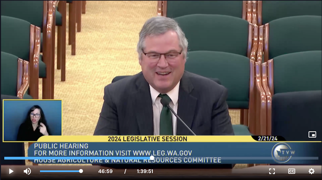 REP. JT WILCOX’S BILL WAS OFFICIALLY DEAD AND BURIED, BUT THE HOUSE AGRICULTURE AND NATURAL RESOURCES COMMITTEE HELD A PUBLIC HEARING ON IT. (TVW)